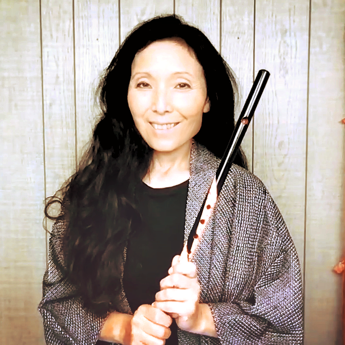 Her work explores breath, silence, and emotional storytelling through the voice of the Japanese bamboo flute.
