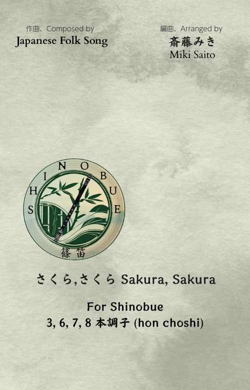 "Sakura, Sakura" Sheet Music for Shinobue 3, 6, 7, 8 hon choshi (Level 5)