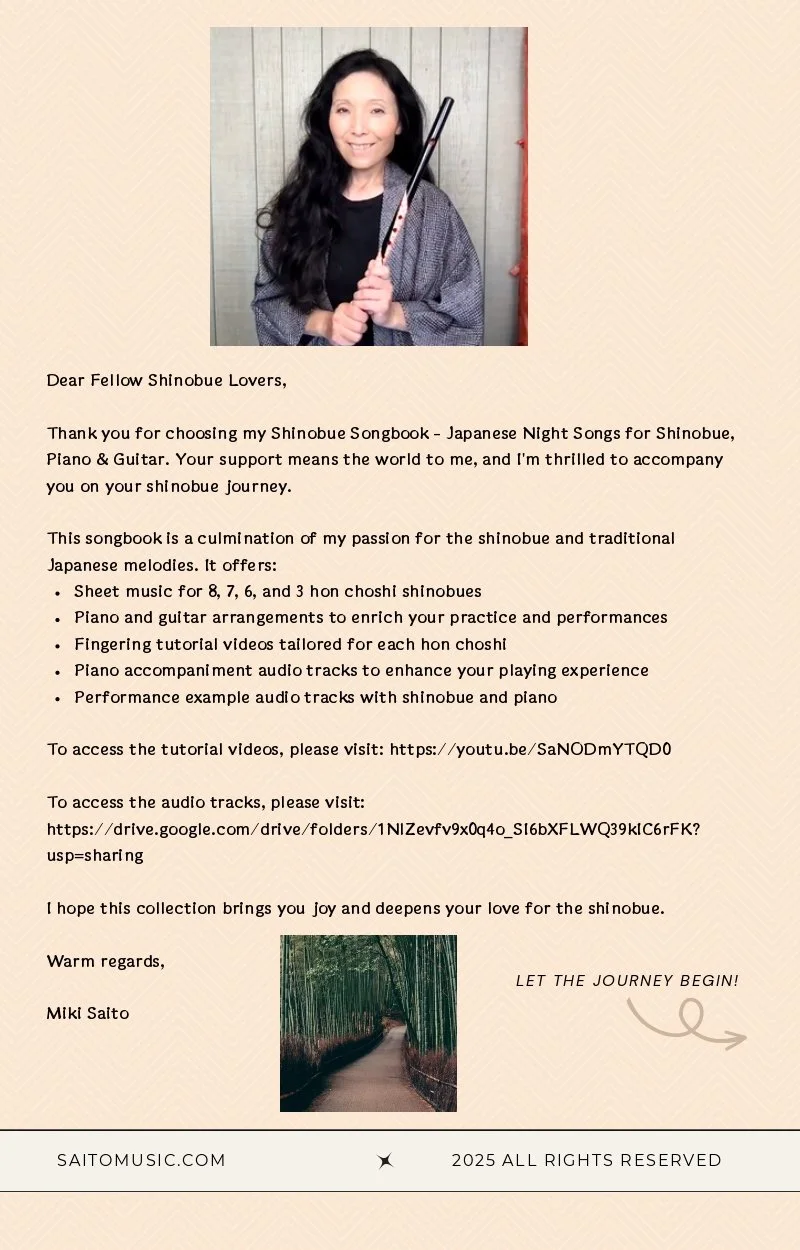 Performance Example Tracks: Listen to complete renditions (shinobue and piano) of each song for every hon choshi, providing you with a clear reference and eliminating any guesswork.
